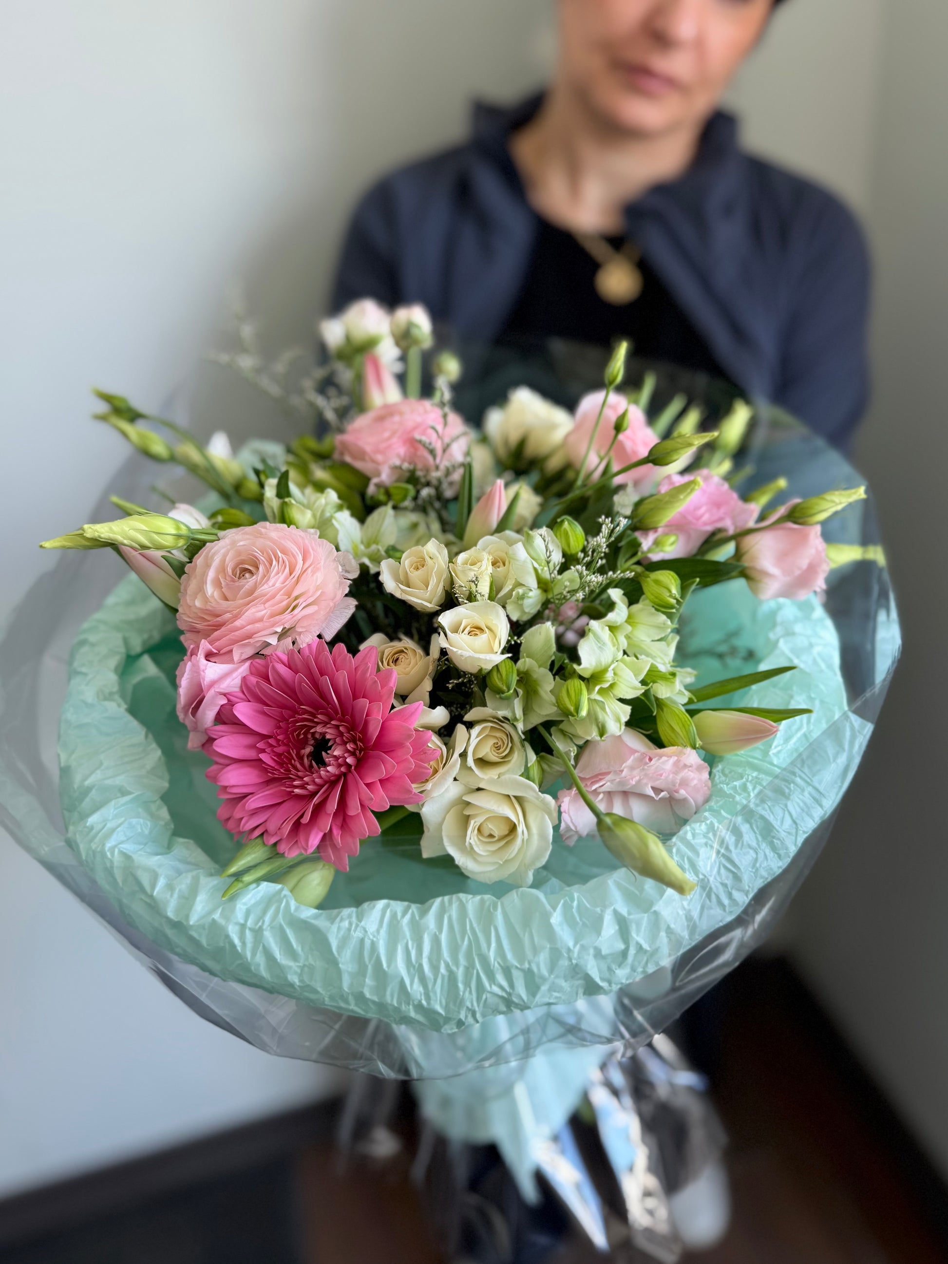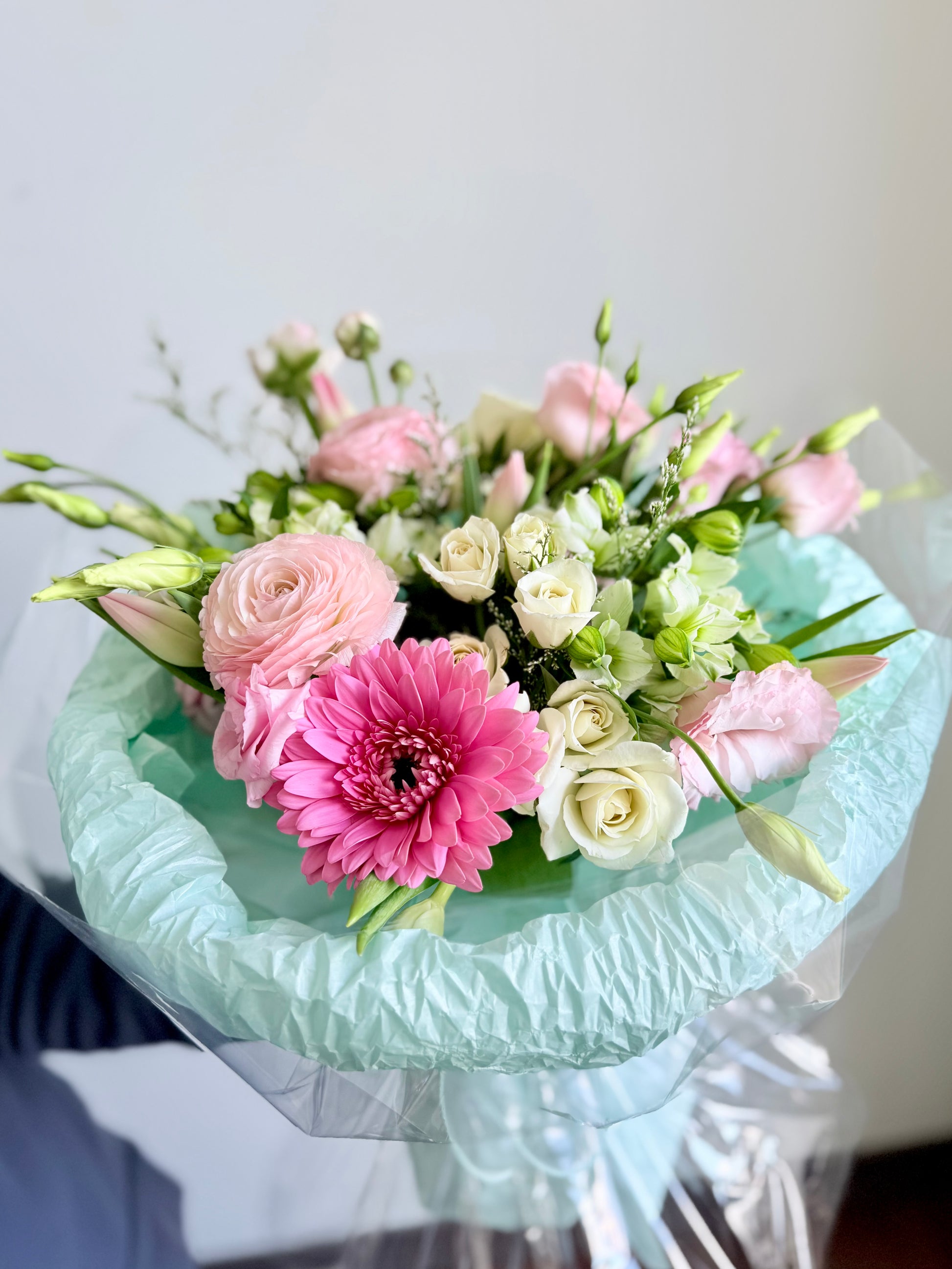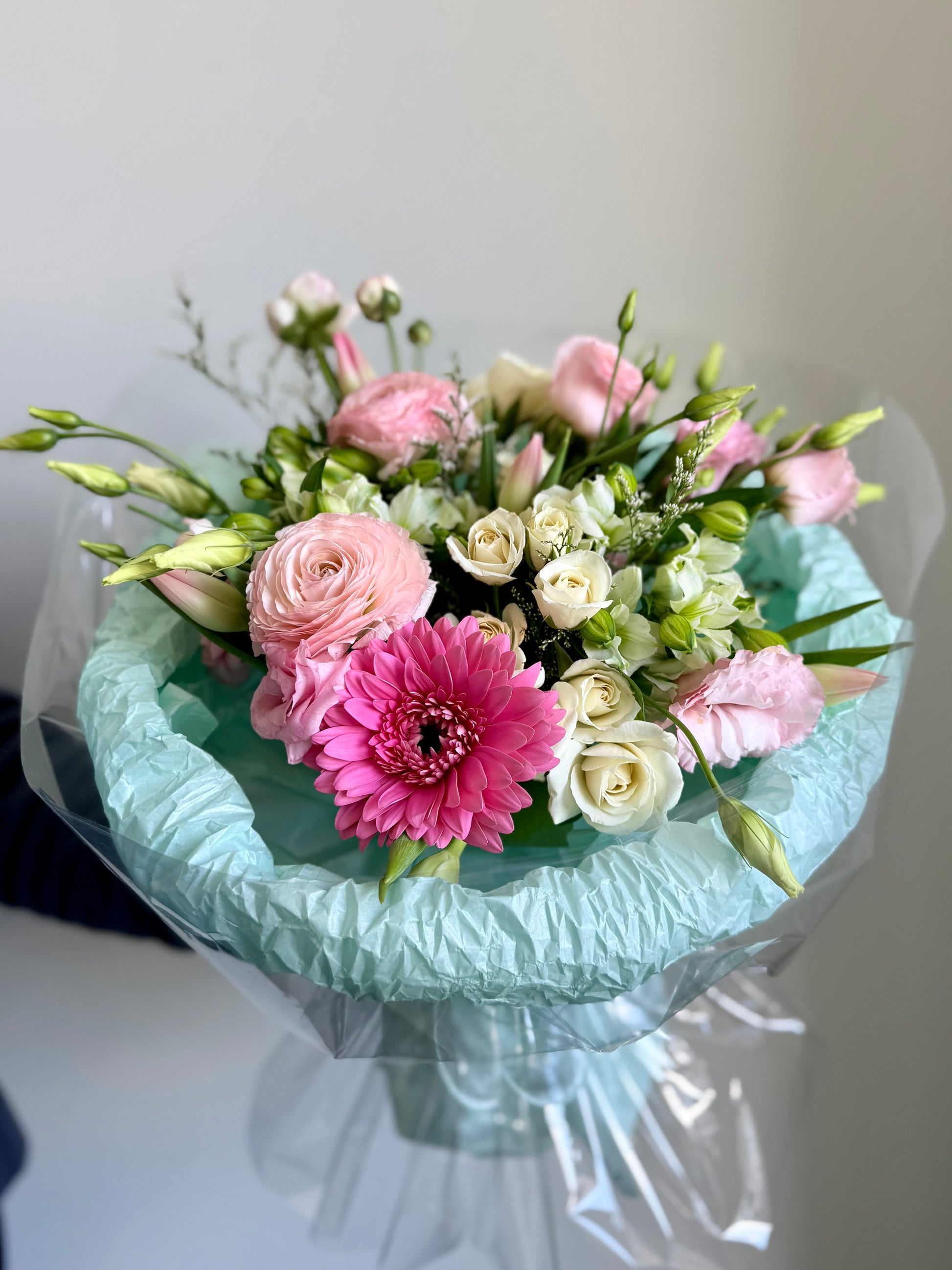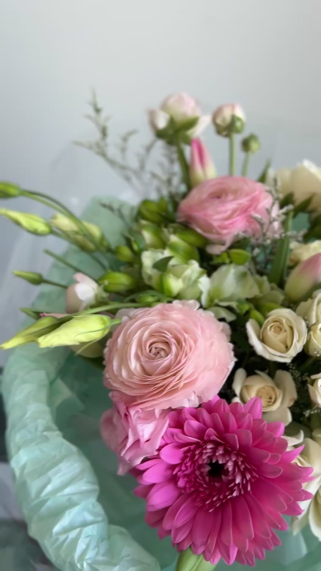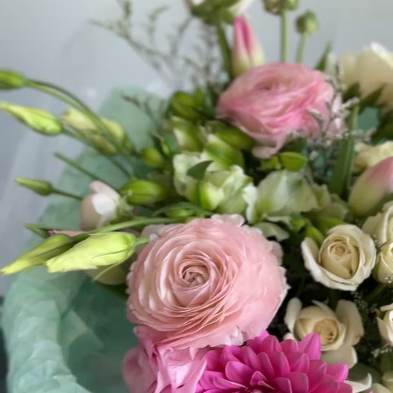 Introducing Cotton Candy Dream — one of our most beloved bouquets at our Toronto flower shop. This stunning arrangement features premium pink ranunculus, gerbera daisy, spray roses, and lisianthus, hand-wrapped in our signature mint packaging. Whether you’re looking for same-day flower delivery in Toronto, a birthday bouquet in Toronto, or a thoughtful gift for someone special, this pastel beauty delivers pure joy. Order fresh flowers online from your trusted local Toronto florist — because every moment deserves something beautiful.