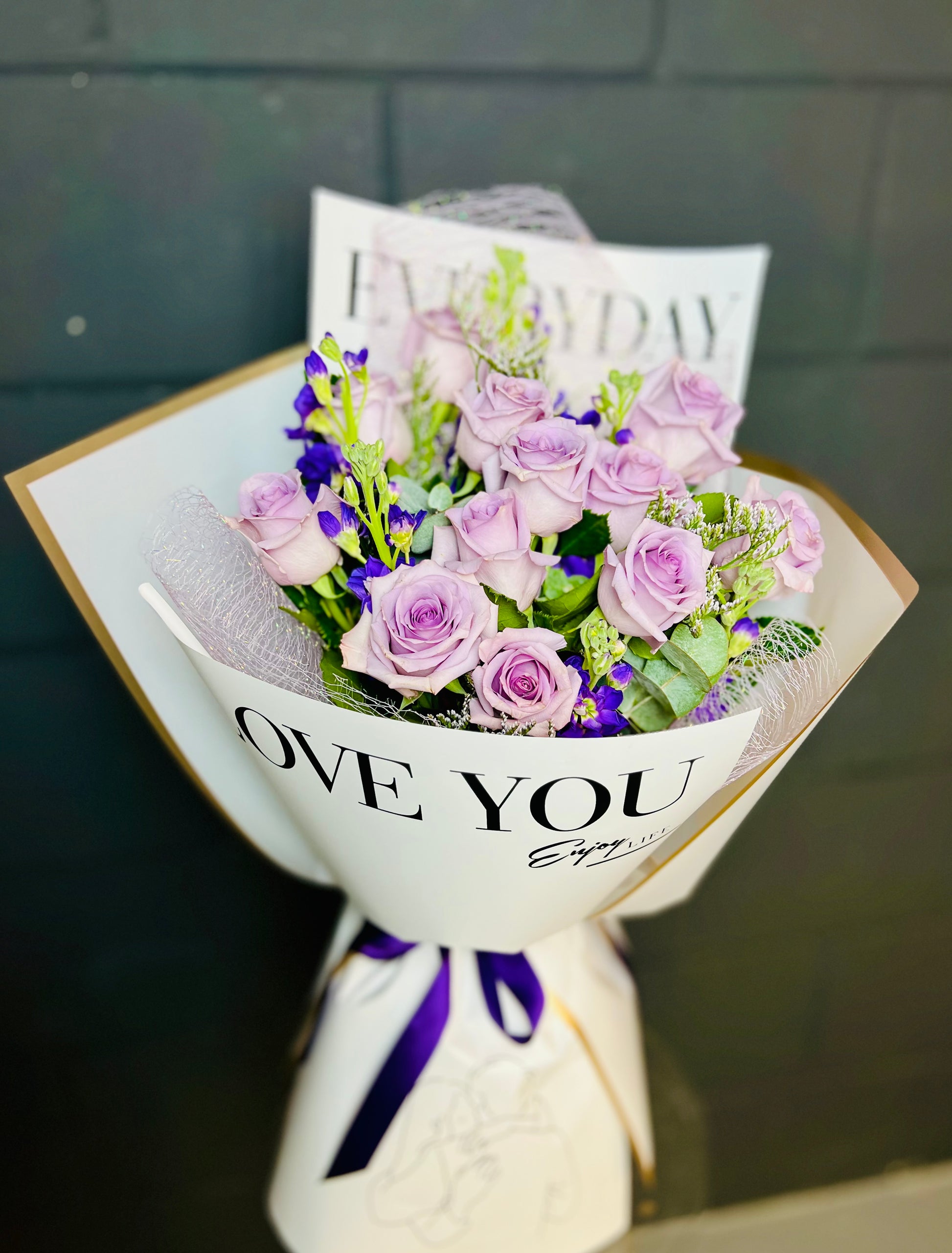 Lavender Dreams – A serene bouquet of lavender roses and stock flowers paired with lush greenery. Perfect for anniversaries, sympathy, or any occasion that calls for elegance and calm. Handcrafted with care, this arrangement brings a dreamy, tranquil touch to your loved one’s day.